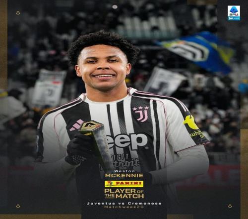 官方消息,麦肯尼当选尤文图斯对阵克雷莫内塞一役全场最佳。