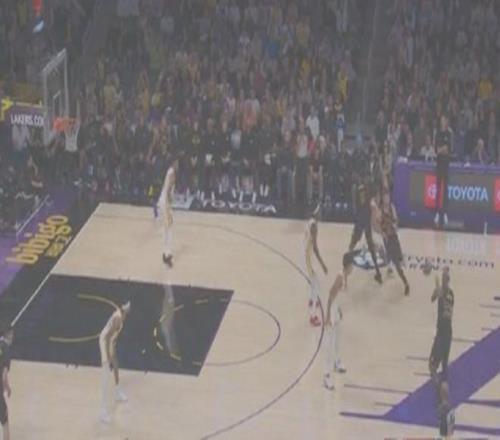之后勒布朗和八村替下斯马特和文森特,灵活略减,但是保持了尺寸:四个两米的,外加一长人,勒布朗也给卢卡喂无球,空间大开,直接打崩鹰。