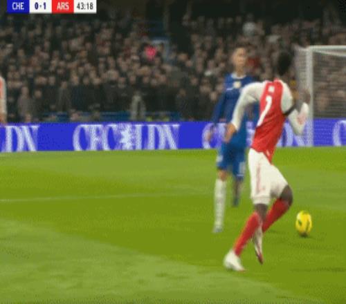 第43分钟,库库雷利亚铲倒萨卡,被出示黄牌