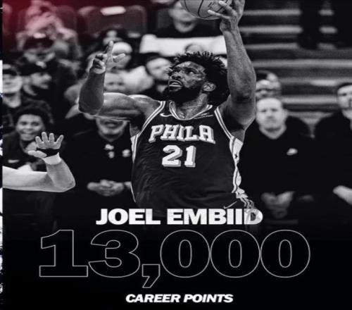 76人这边,恩比德8投4中得到13分3篮板2助攻,正式达成13000分里程碑纪录,也成为76人队史第七位以76人球员身份拿到13000分的球员;保罗-乔治8投4中得到11分3篮板3助攻。