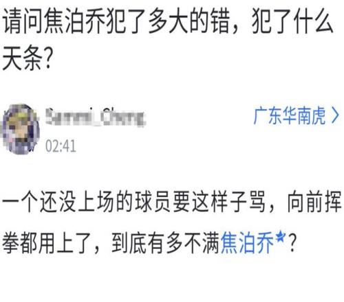 这就有点离谱了,明明是王少杰、杜润旺防守出现了大空位漏人,杜锋前脚骂完王少杰,后脚又对前7分钟比赛一秒没打的焦泊乔一顿臭骂,十分不可理喻,有球迷在赛后发帖替焦泊乔伸冤:一个还没上场的球员都要这样子骂,向前挥拳都用上了,到底有多不满焦泊乔?焦泊乔是犯了什么天条?
