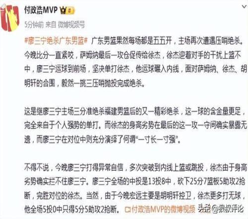 广东遭绝杀引热议!廖三宁3战2绝杀引媒体人狂刷屏“值得全明星”