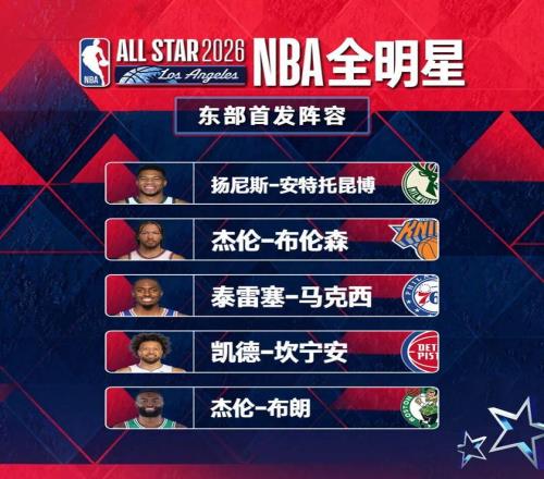 1月20日,NBA官方公布2026洛杉矶全明星正赛的首发阵容,雄鹿扬尼斯·安特托昆博和湖人卢卡·东契奇领衔东西部全明星,勒布朗·詹姆斯连续21年全明星首发纪录中断。中国球员杨瀚森在西部投票的综合总权数是66,总排名第80位。